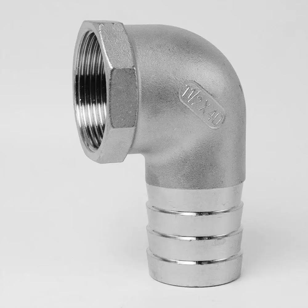2. Installation correcte : Pour l'extrémité filetée, enveloppez les filetages avec du ruban d'étanchéité avant de visser le raccord en place. Pour l'extrémité barbelée, faites glisser le tuyau complètement jusqu'à la base de l'ardillon et fixez-le fermement à l'aide d'un collier de serrage en acier inoxydable positionné sur les dents de l'ardillon. La procédure d'installation est identique pour le coude fileté mâle à 90 degrés et le coude fileté femelle à 90 degrés, garantissant un processus simple et cohérent.